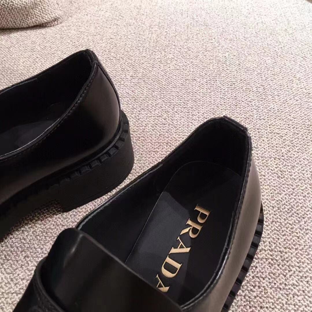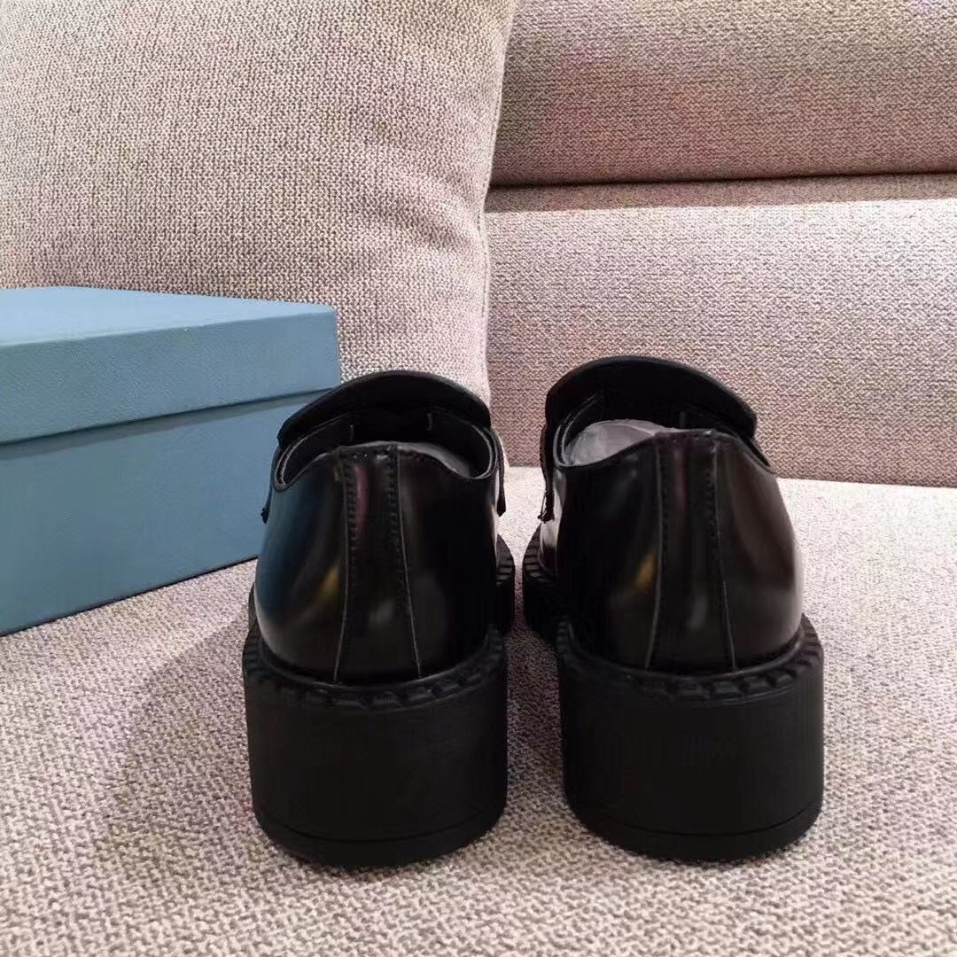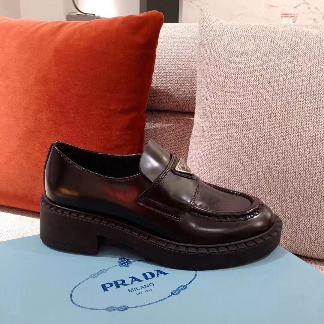 PRADA 프라다 초콜렛 트라이앵글 로고 브러쉬드 로퍼 블랙 1D246M > 신발