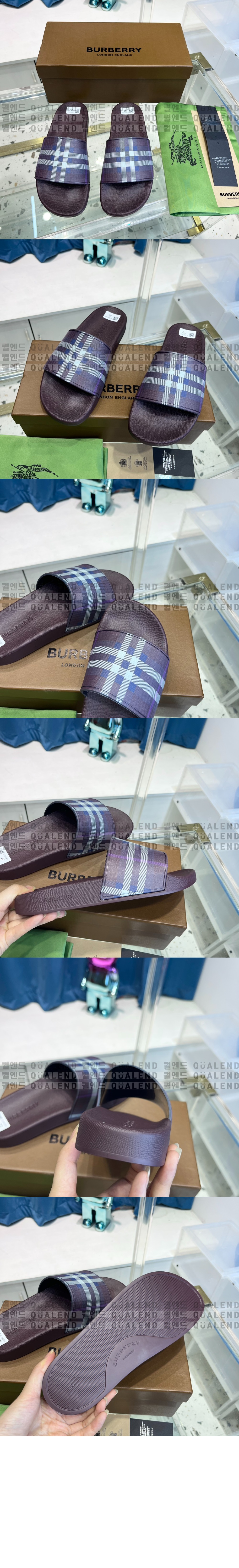 버버리 펄리 체크 슬라이드 샌들 8055246