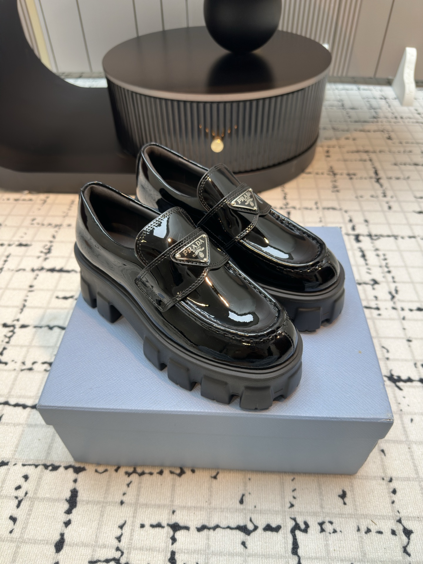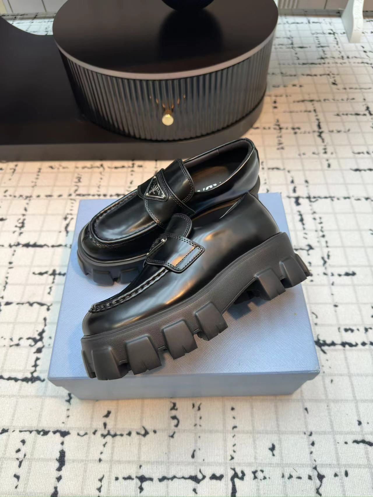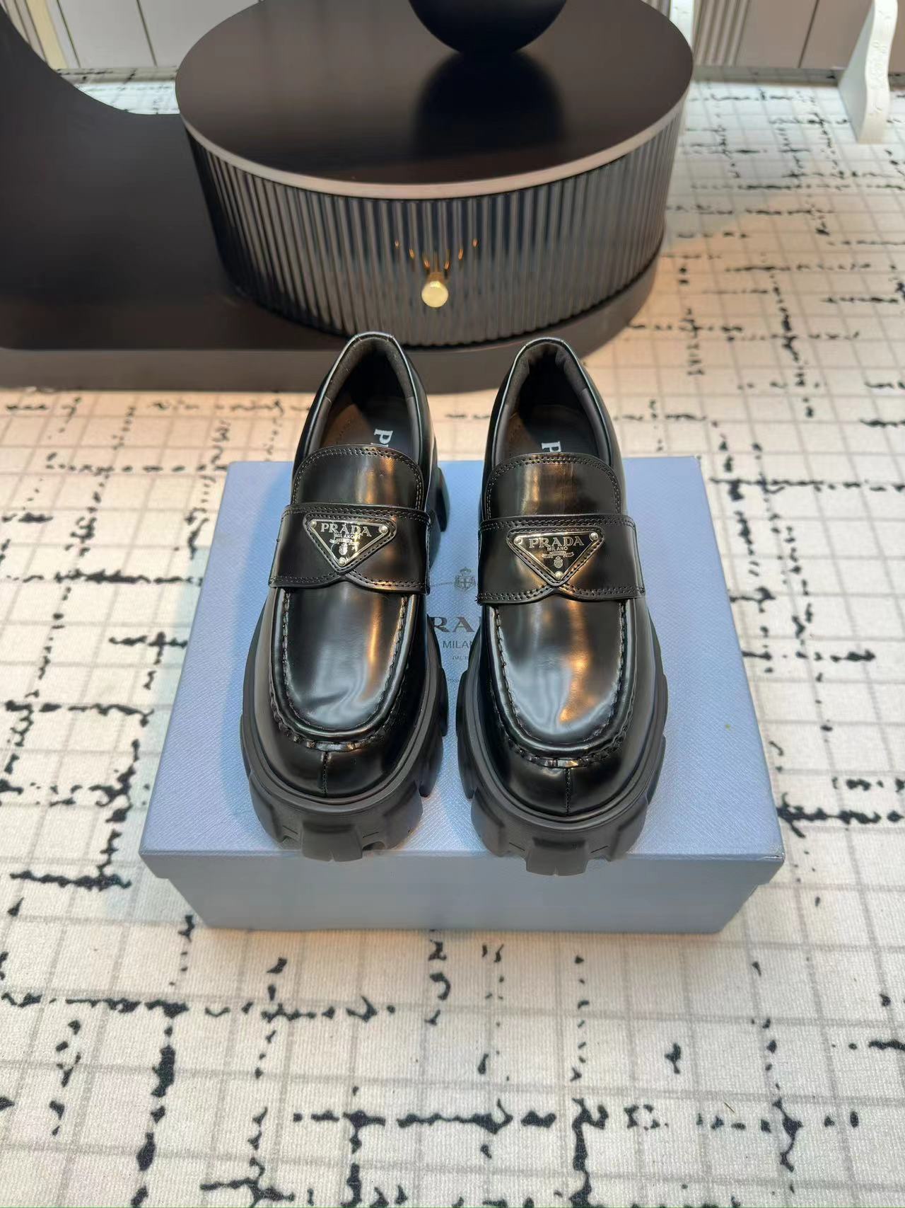 프라다 모놀리스 트라이앵글 로고 로퍼 > 신발
