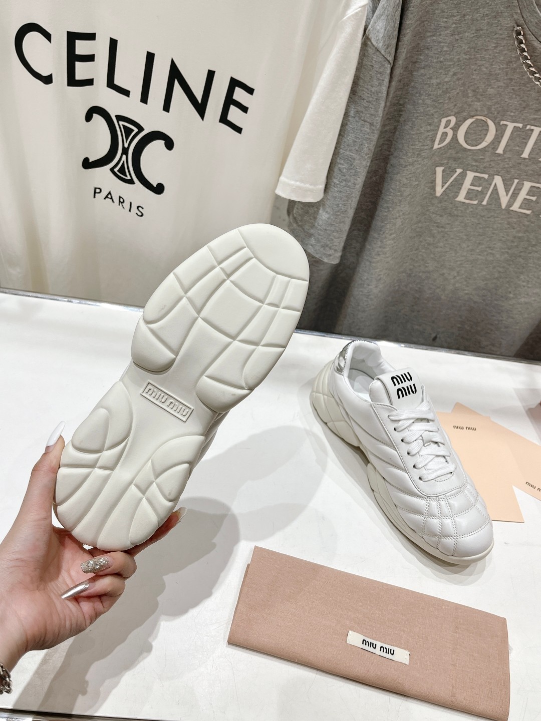 미우미우 여성 퀼티드 나파 레더 스니커즈 2024SS
