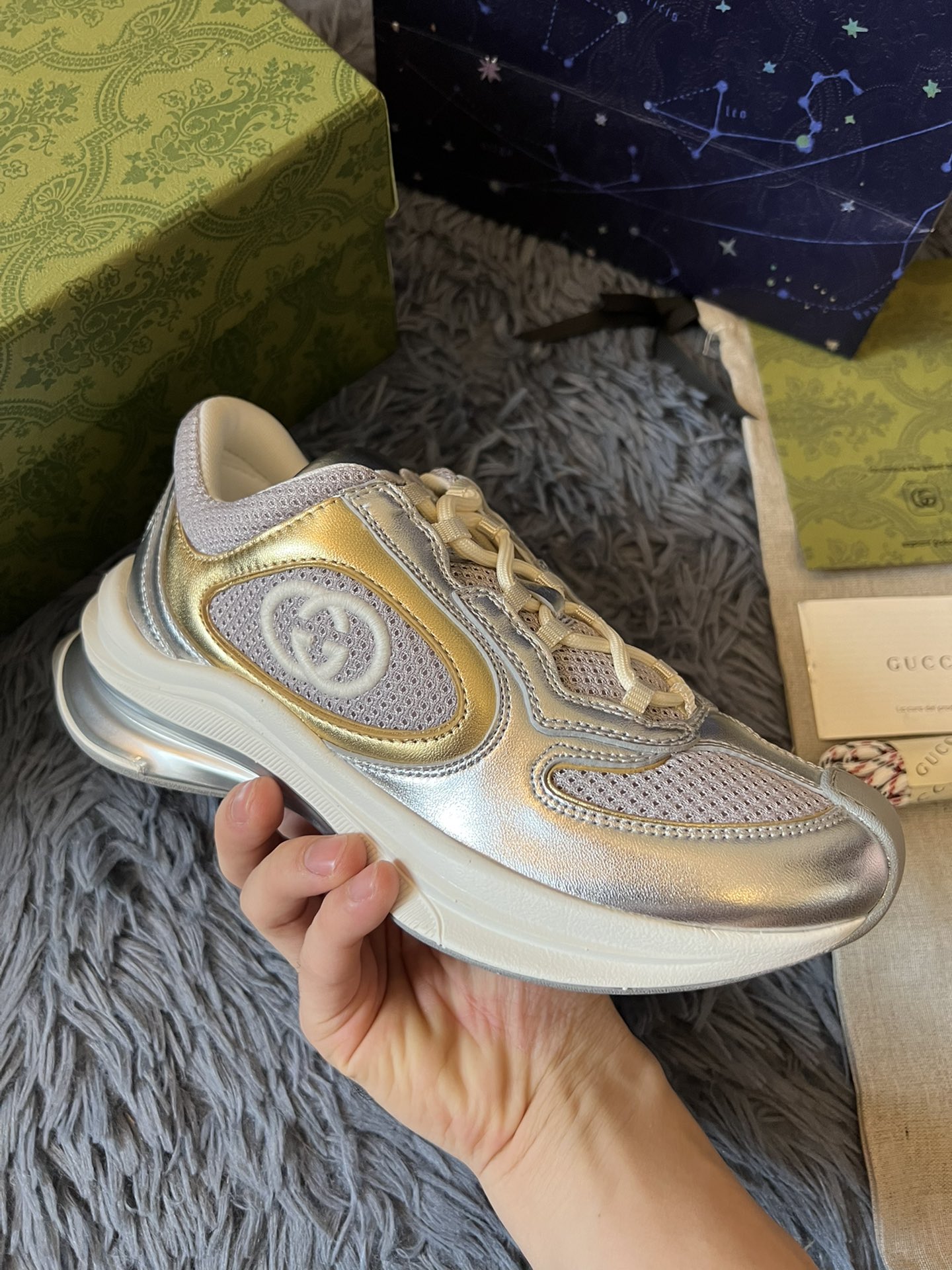 런 인터로킹 G메탈릭 스니커즈 > 신발
