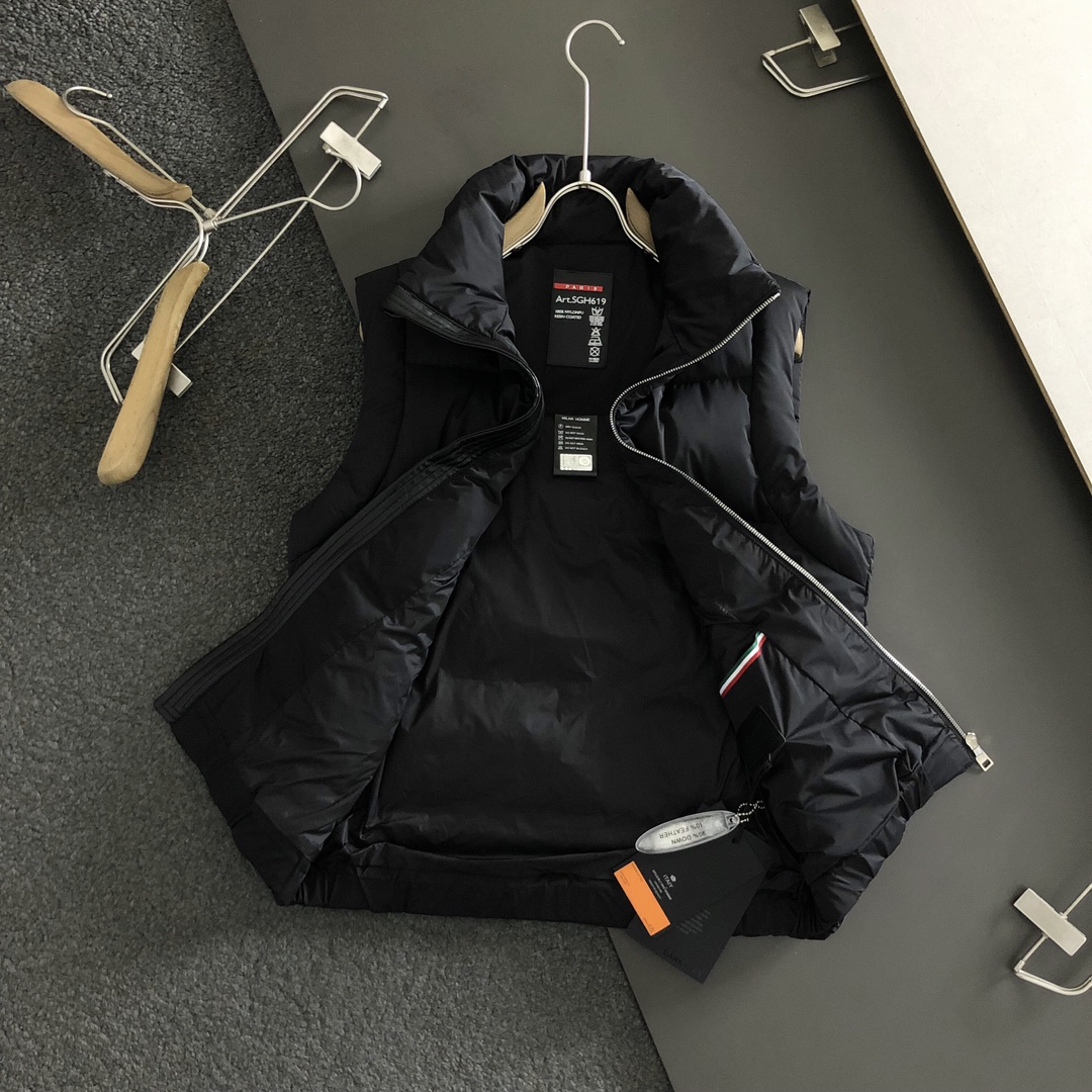 프라다 리얼 가죽 패치 다운 베스트 > 의류