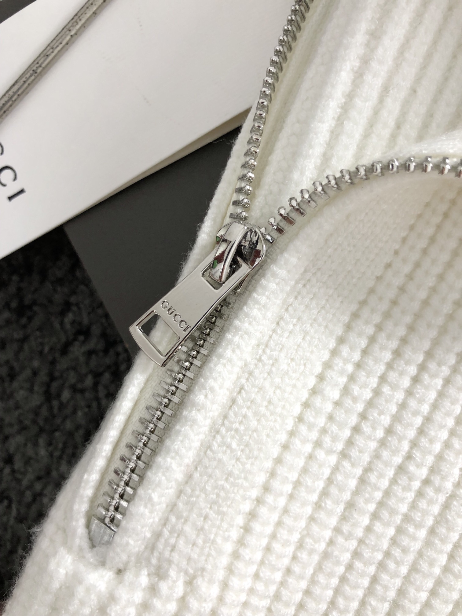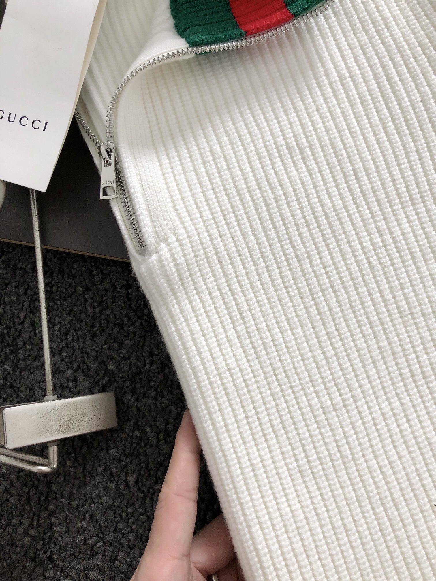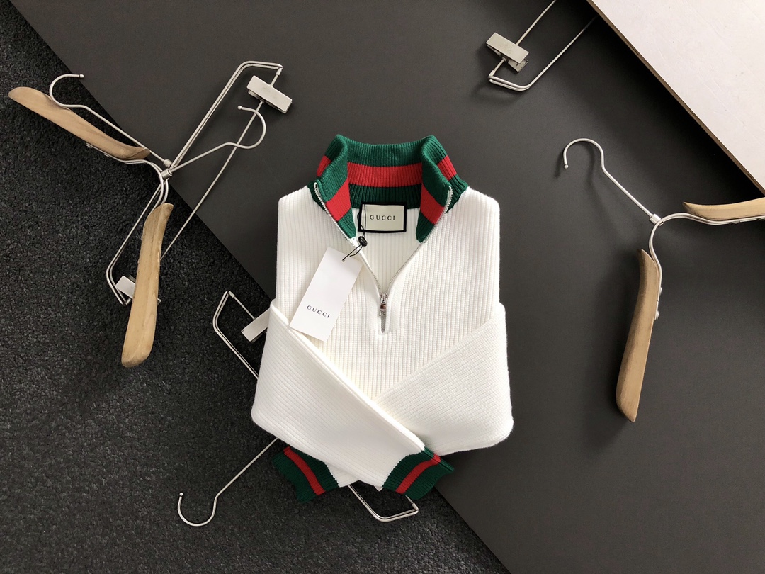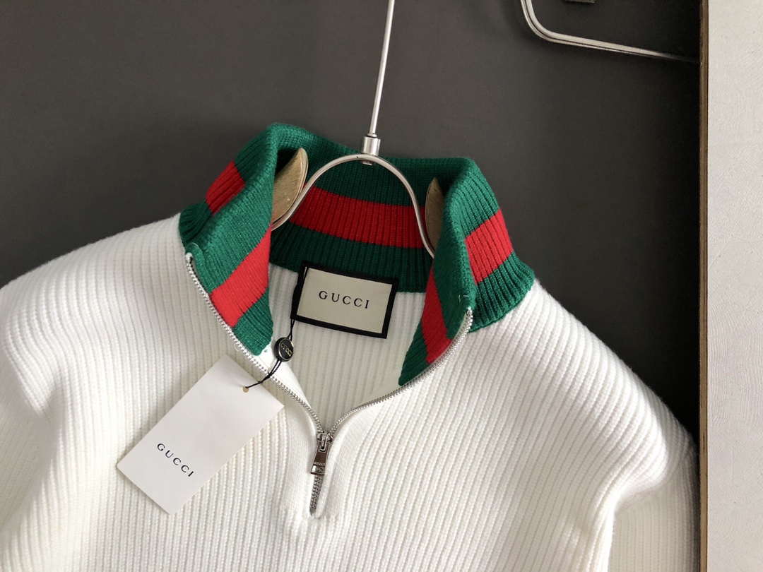 구찌 배색 하이넥 지퍼 울 니트 > 의류