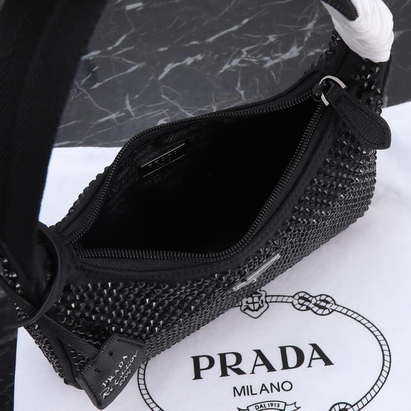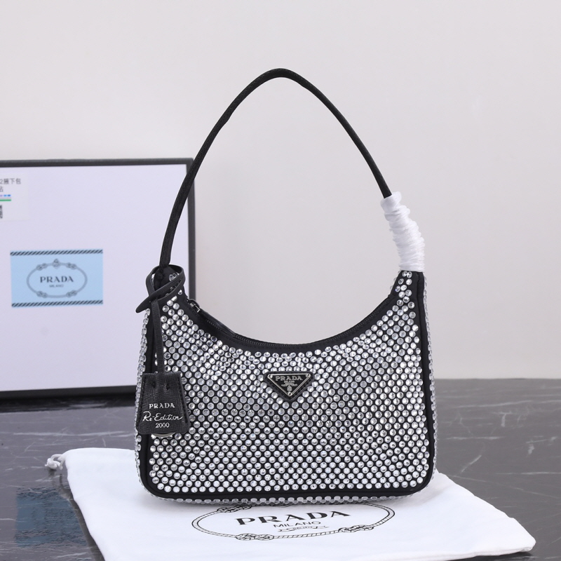 PRADA 프라다 크리스털 장식 새틴 미니백 > 가방
