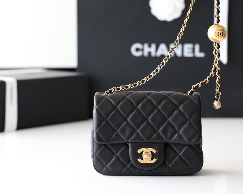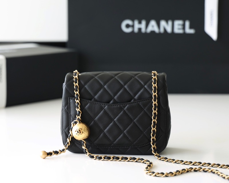 [블랙핑크 제니] CHANEL 샤넬 체인 골든볼 쁘띠삭 램스킨 숄더백 블랙 금장
