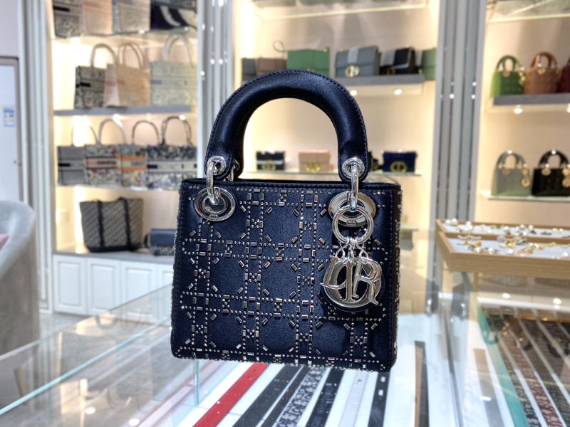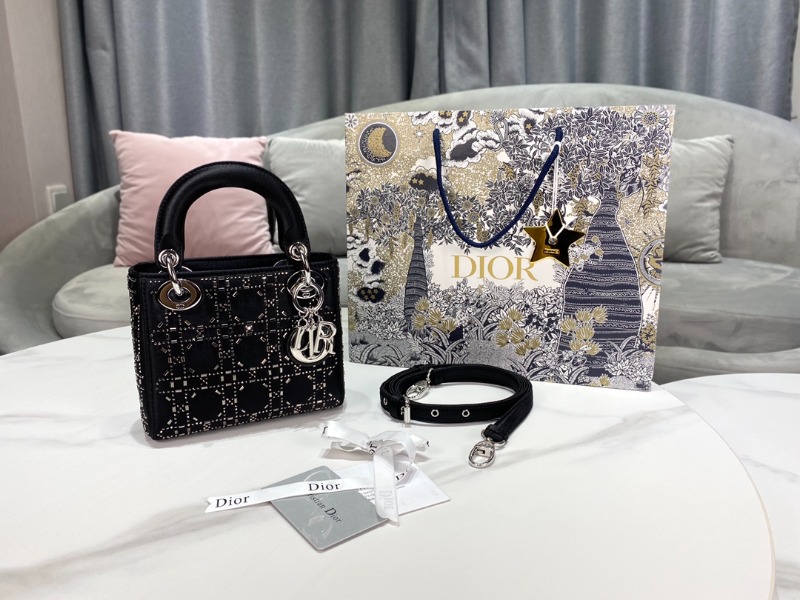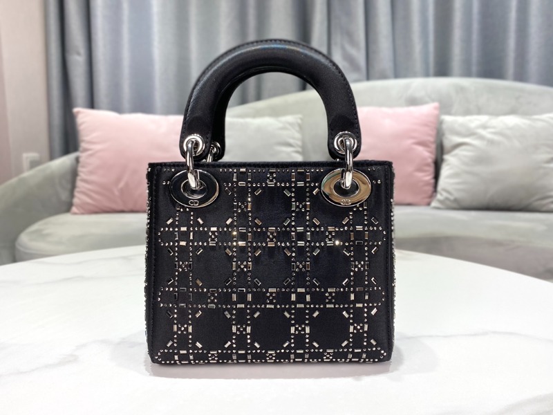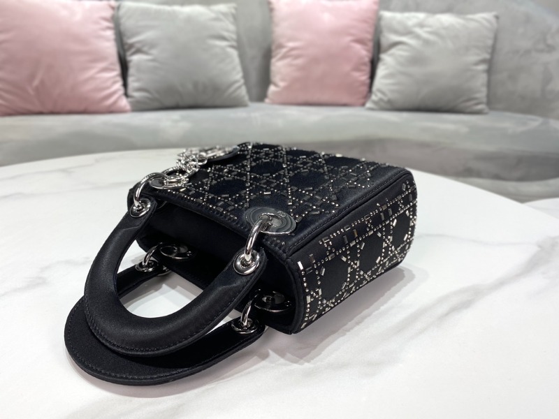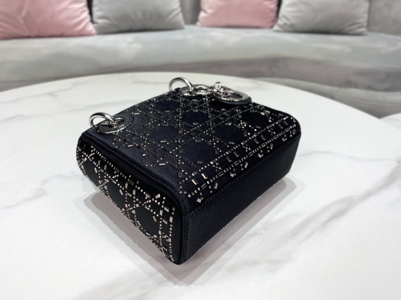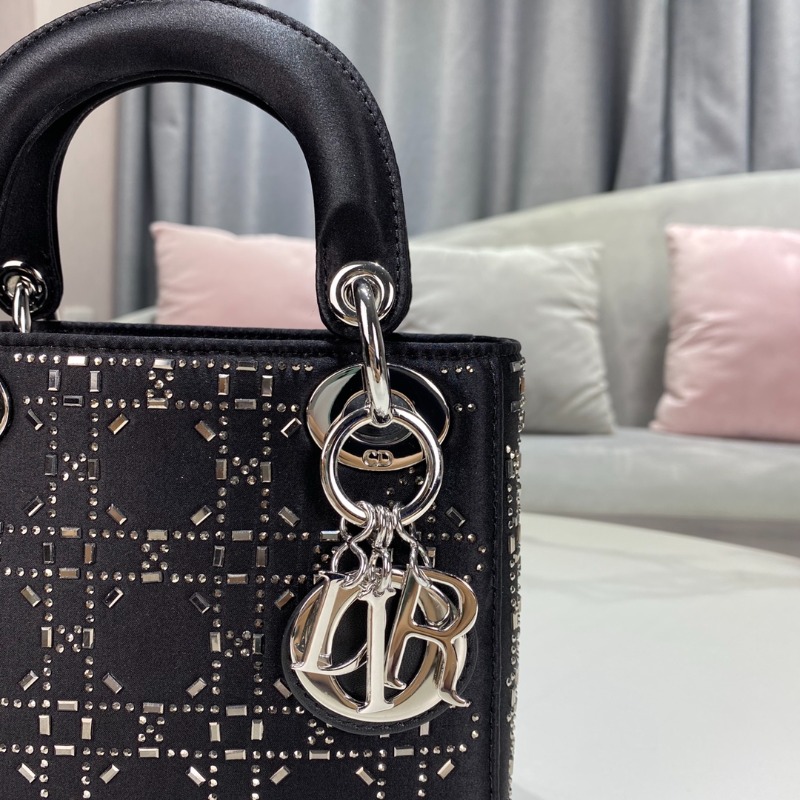 [블랙핑크 지수] DIOR 디올 LADY DIOR 미니 백 블랙 라인 스톤 까나쥬 새틴