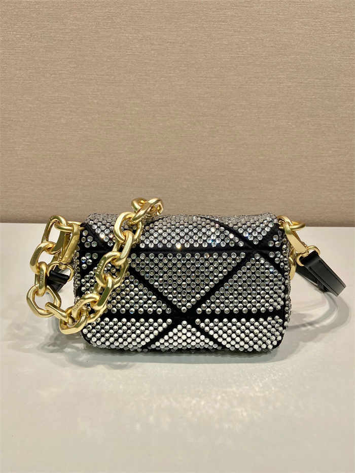 PRADA 프라다 크리스탈 장식 새틴 미니백 1BD329