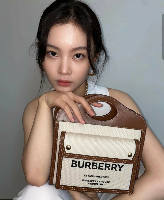 [가수 이하이] Burberry 버버리 투톤 캔버스 레더 포켓백