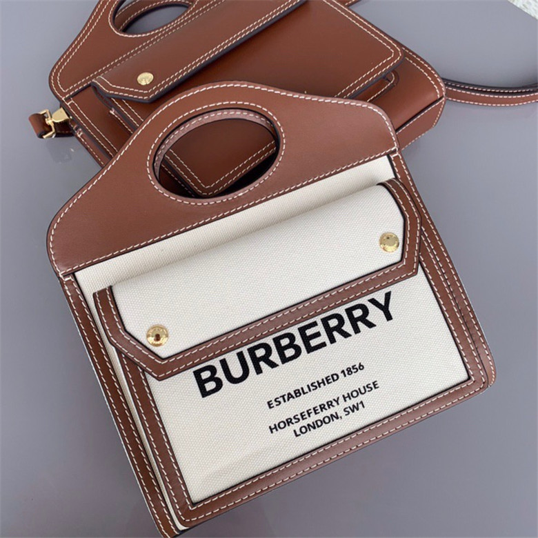 [가수 이하이] Burberry 버버리 투톤 캔버스 레더 포켓백 > 가방