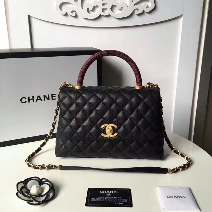 Chanel 샤넬 코코핸들 캐비어 블랙&금장 25cm