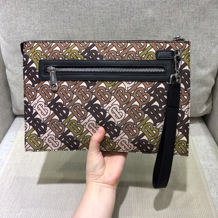 Burberry 2020 TB Nylon & Leather Clutch Bag , 29cm - 버버리 2020 TB 남여공용 나일론&레더 클러치백 ,BURB0404,29cm,브라운 > 가방
