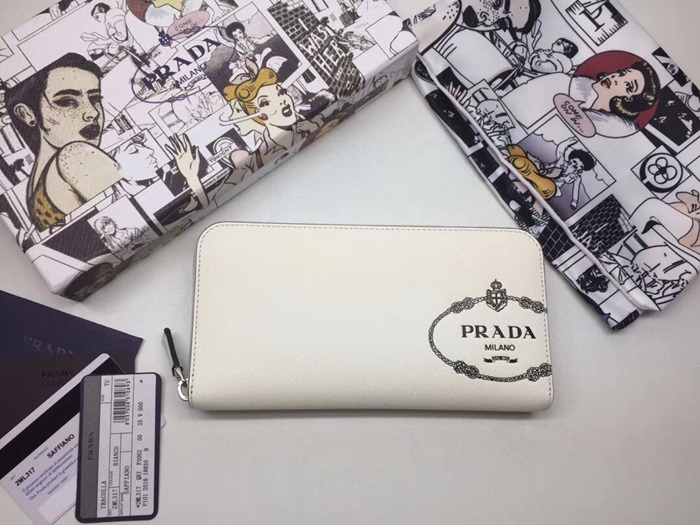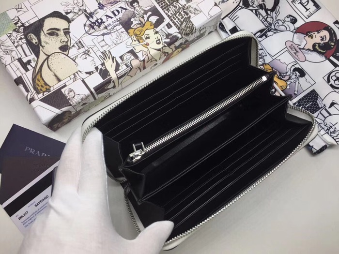 Prada Saffiano Mens Zip Round Wallet, 2ML317 - 프라다 2020 사피아노 지퍼 라운드 장지갑,PRAW0152,20CM.화이트,네이비 > ETC