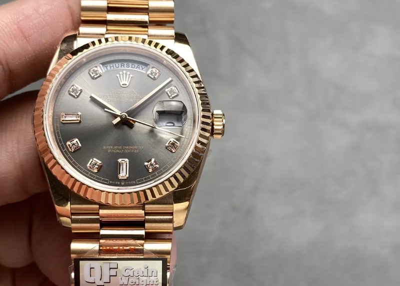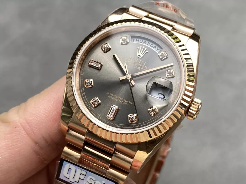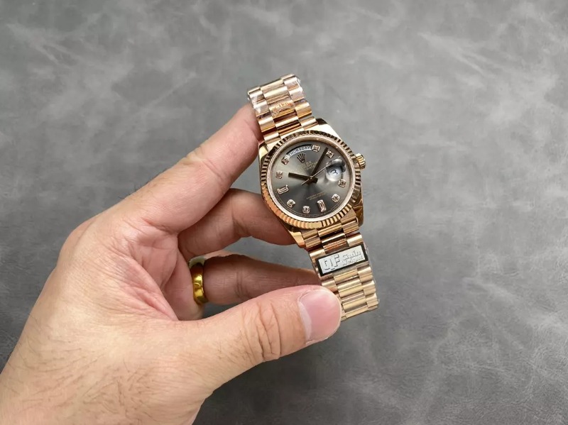 ROLEX 로렉스 데이데이트 그레이 옴브레 다이얼 로즈골드 금통 10P 36mm > 시계