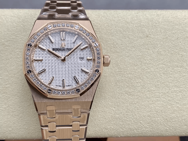 AUDEMARS PIGUET 오데마피게 로얄오크 흰판 금통 다이아 베젤 33mm 여성용