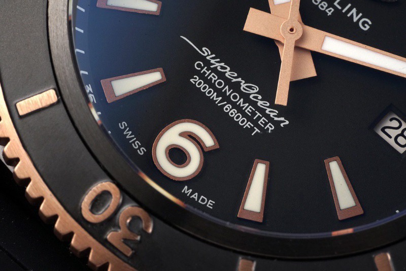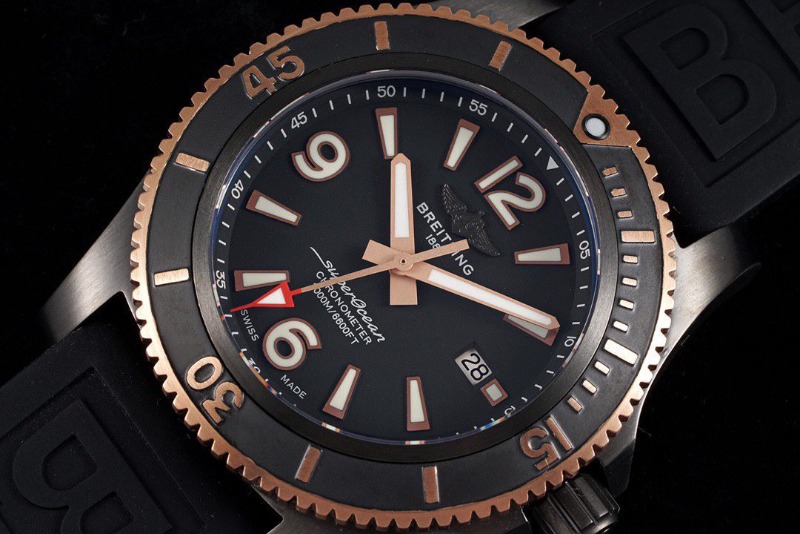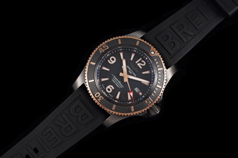 BREITLING 브라이틀링 슈퍼오션 블랙 로즈골드 러버밴드 46mm