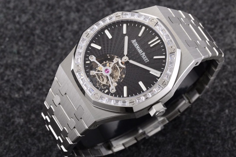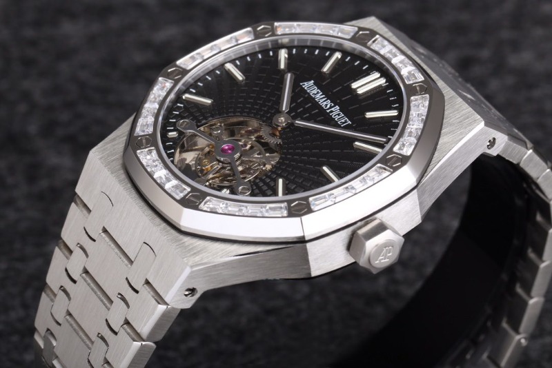 AUDEMARS PIGUET 오데마피게 로얄오크 뚜르비옹 스틸 다이아/쥬얼 베젤 블랙다이얼