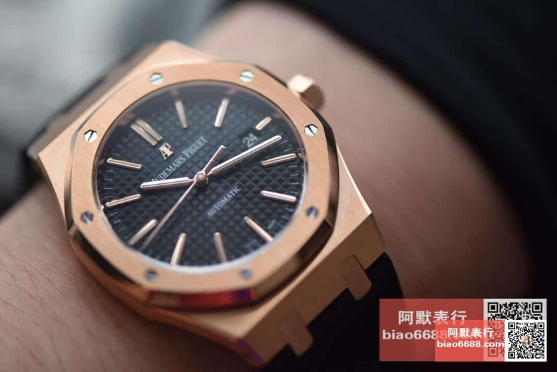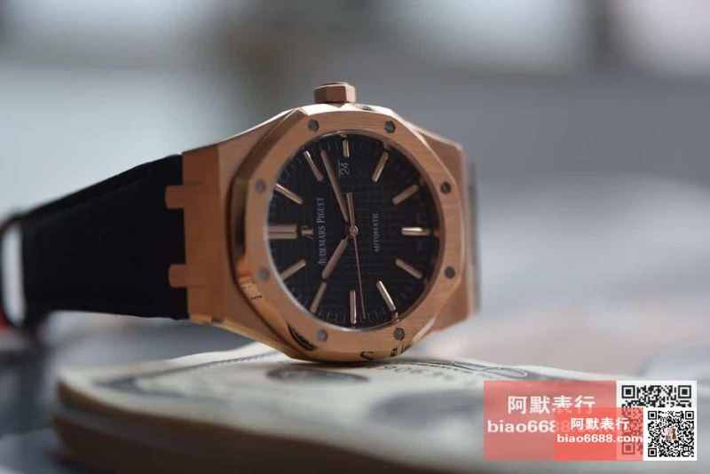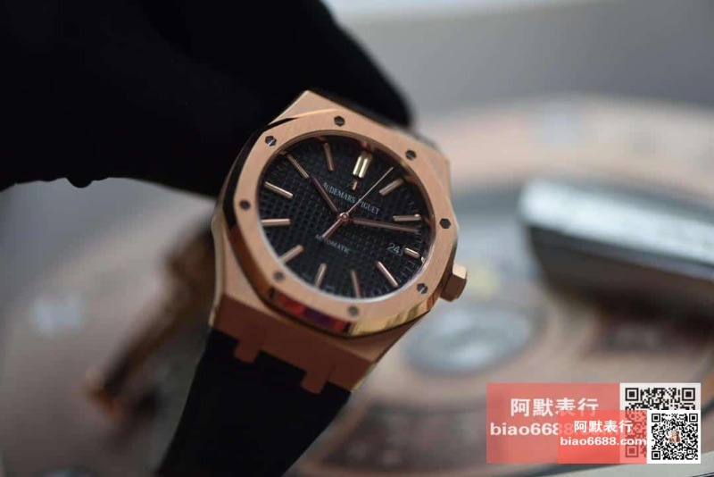 AUDEMARS PIGUET 오데마피게 로얄오크 로즈골드 블랙다이얼 레더스트랩
