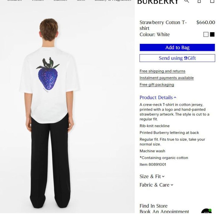 Burberry 버버리 스트로베리 루즈핏 티셔츠