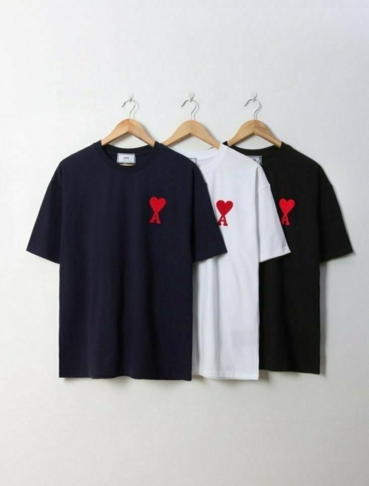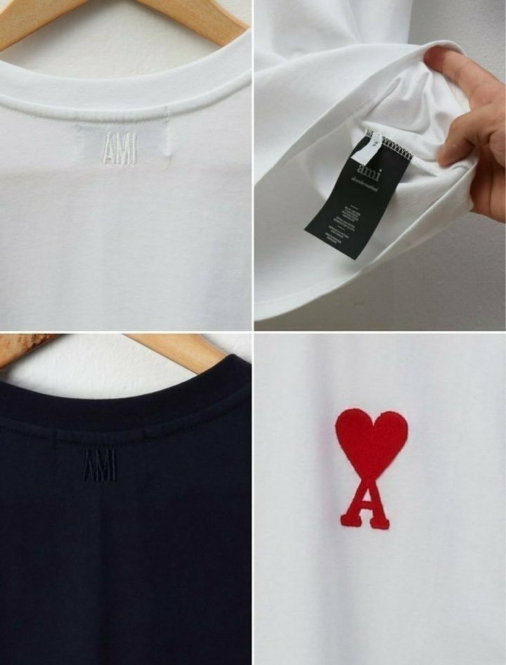 AMI 아미 케릭 하트 카라 반팔티