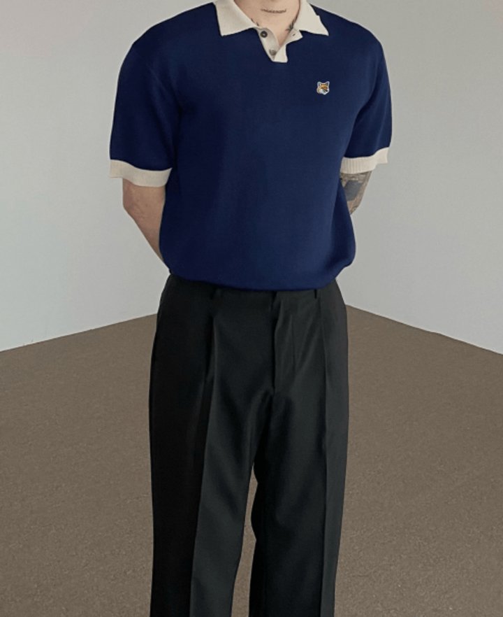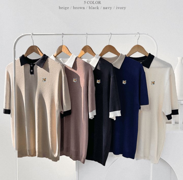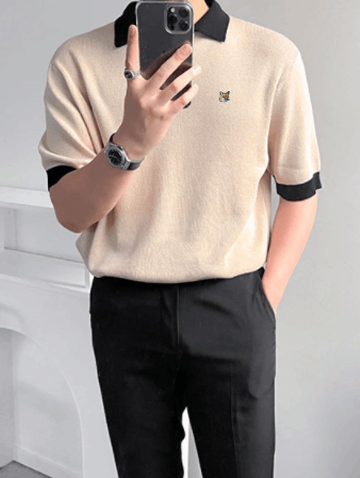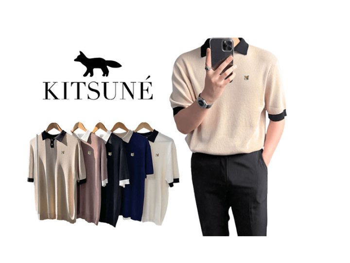 Maison Kitsune 메종키츠네 폭스 배색 카라니트 > 의류