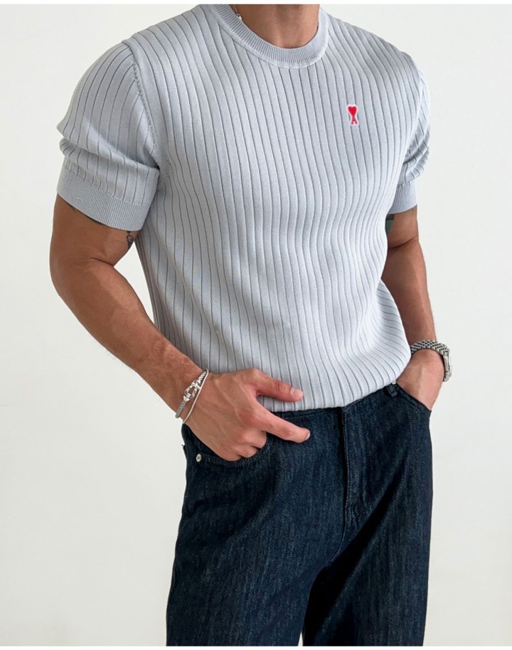 AMI 아미 스몰패치 골지 라운드 니트 > 의류