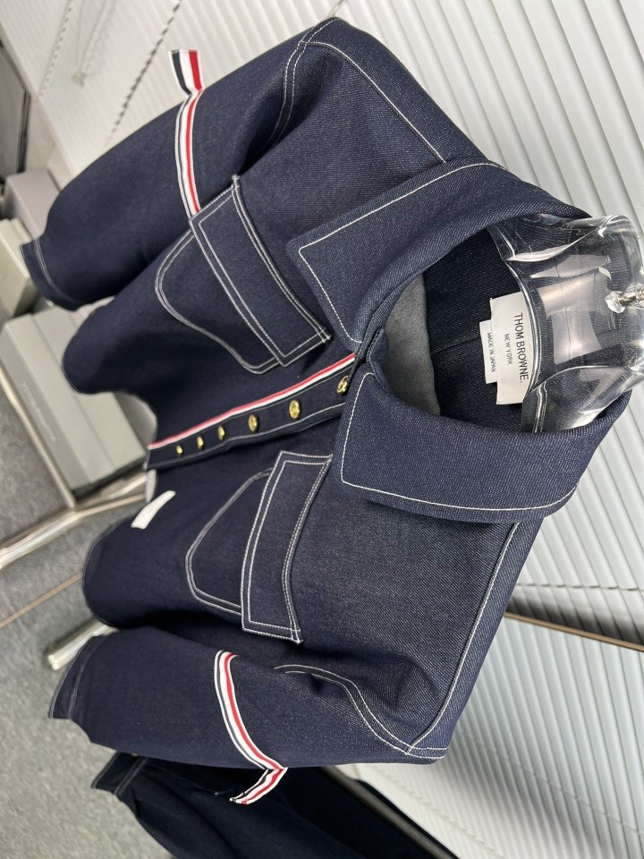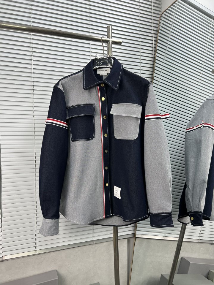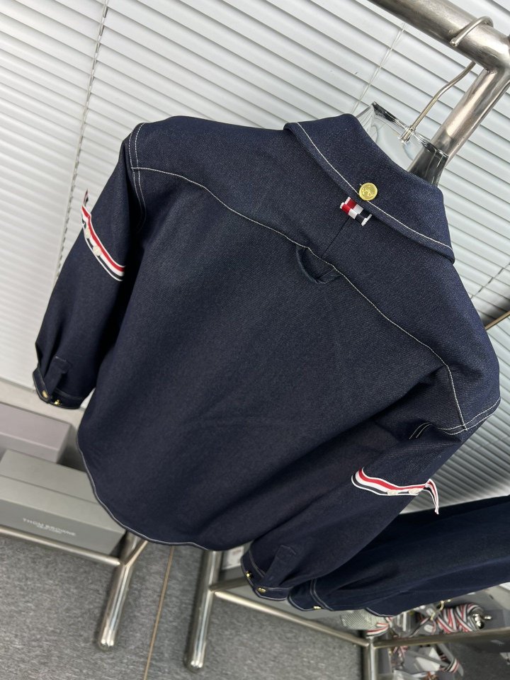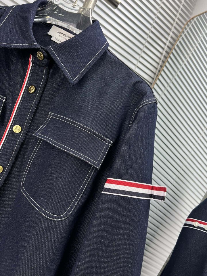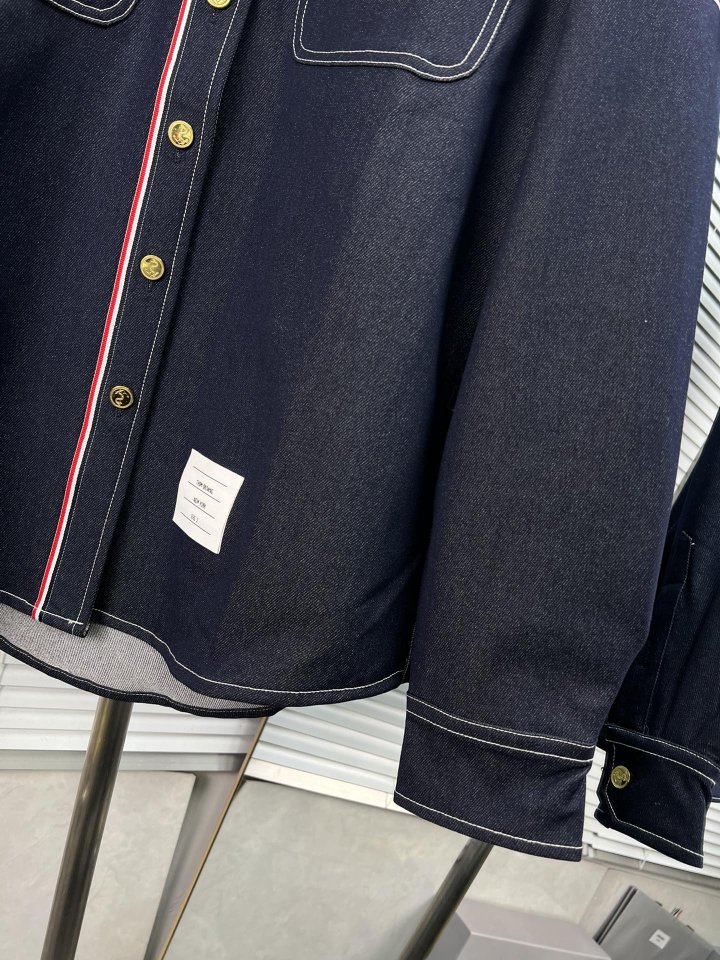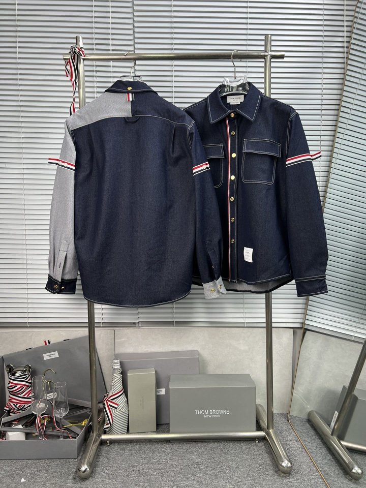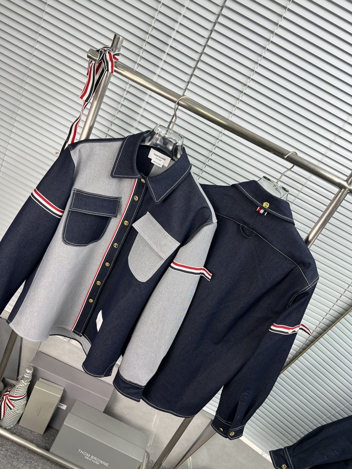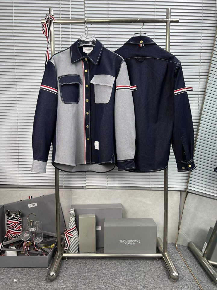 THOM BROWNE 톰브라운 패치워크 암밴드 셀비지 데님 셔츠 > 의류