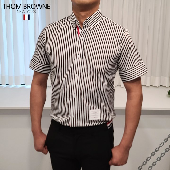 Thom Browne 톰브라운 히든삼선 스트라이프 반팔 셔츠 > 의류
