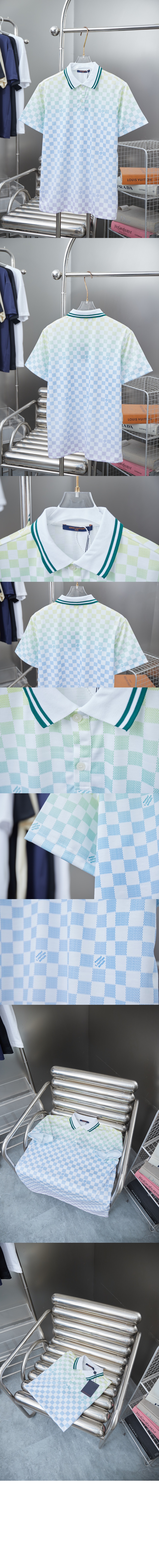 루이비통 다미에 그라디언트 프린티드 실크 폴로 셔츠 1AGTPV > 의류