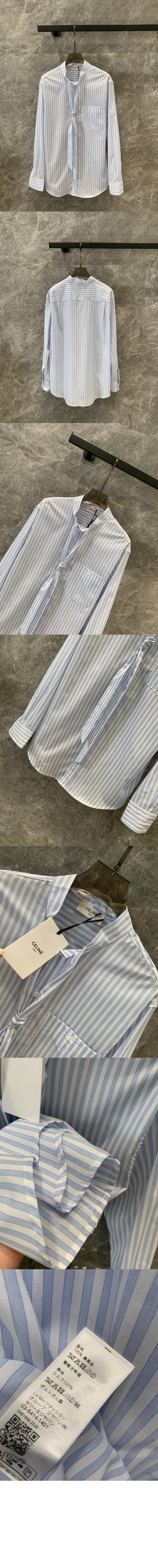 셀린느 크롭 셔츠 스트라이프 코튼 포플린 2C9038
