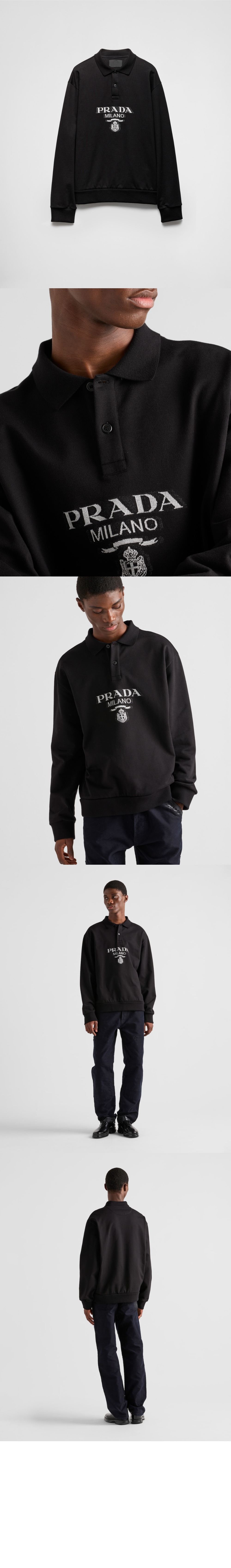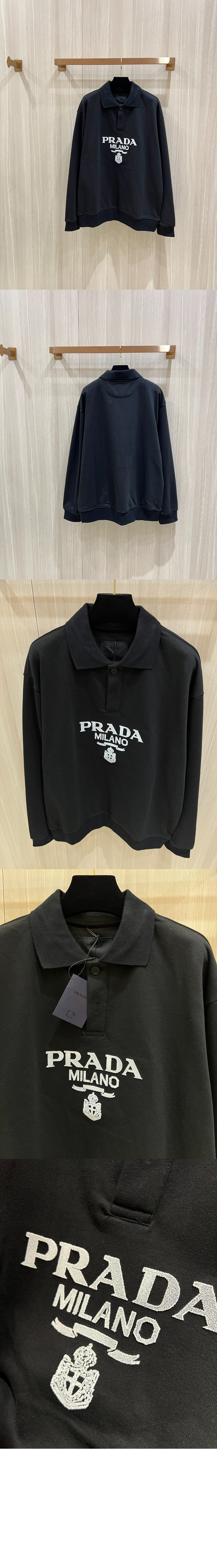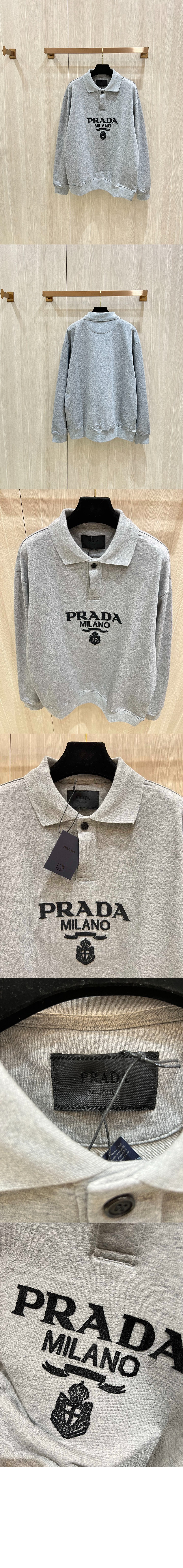 프라다 롱 슬리브 코튼 폴로 셔츠 UJL77B