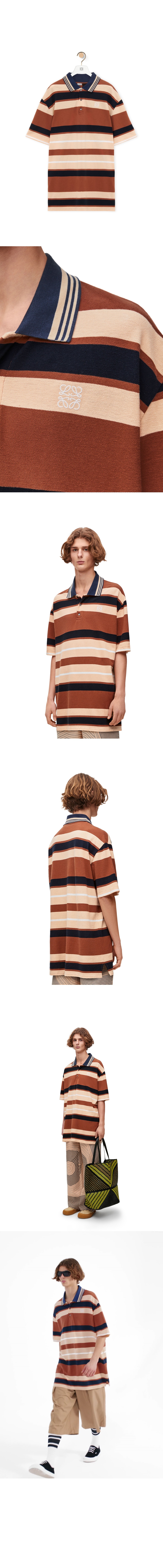 로에베 스트라이프 코튼 린넨블렌드 피케 폴로 셔츠