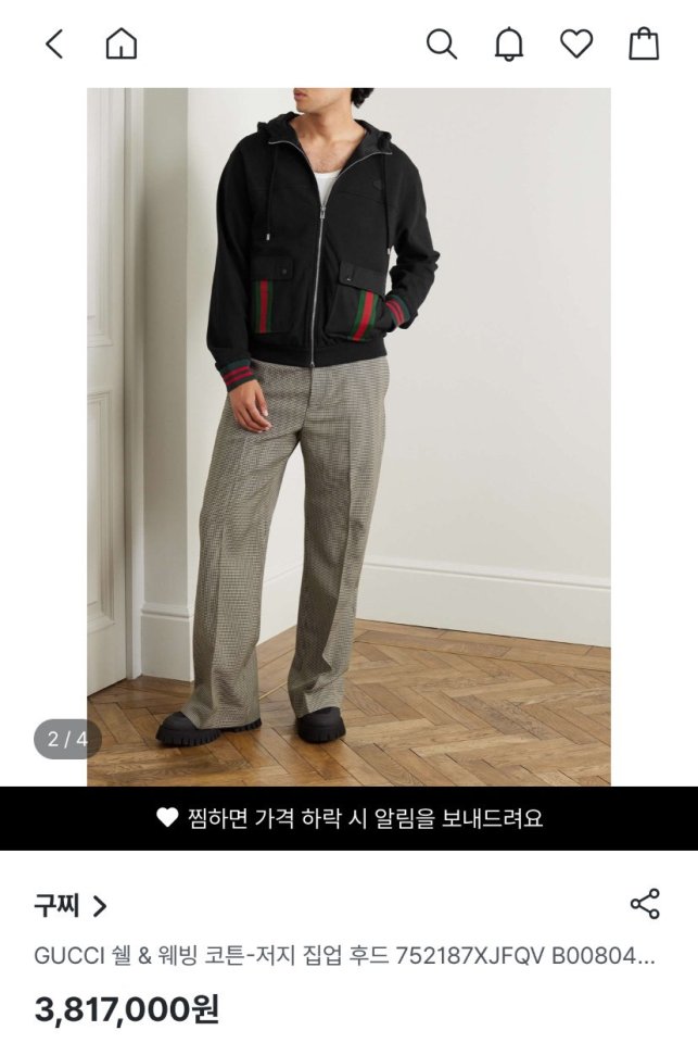 Gucci 구짜 쉘 & 웨빙 코튼 저지 후드집업 > 의류