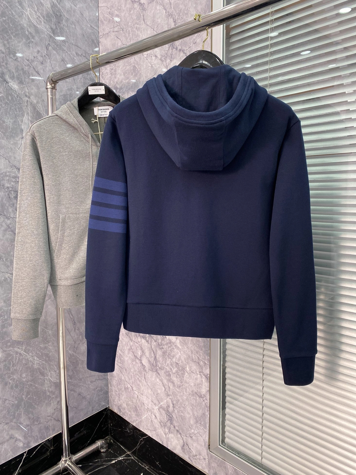 톰브라운 네이비 사선완장 후드 자켓 > 의류
