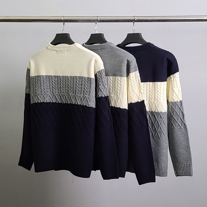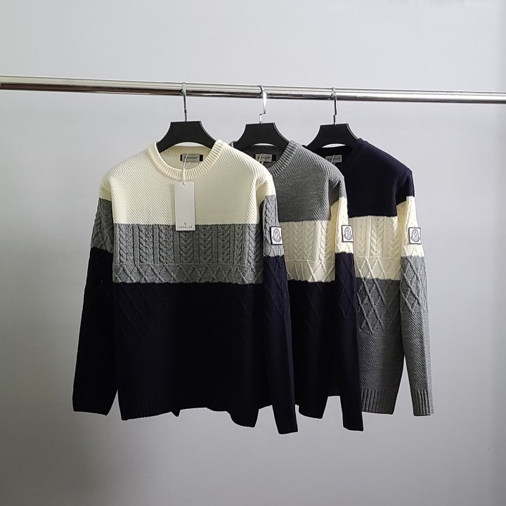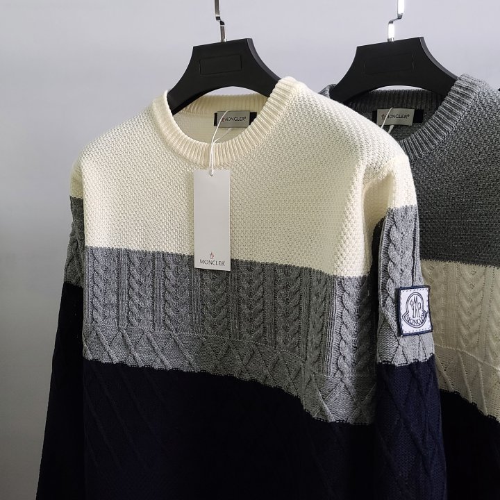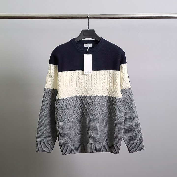 MONCLER 몽클레어 감마블루 3단배색 케이블 니트 > 의류
