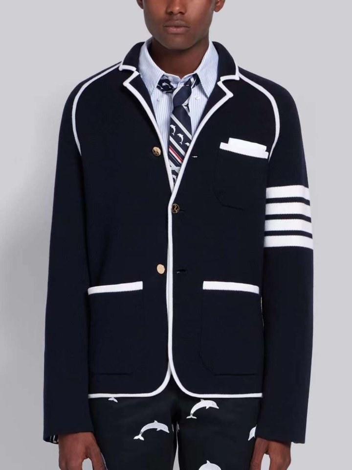 Thom Browne 톰브라운 밀라노 스티치 사선완장 배색 니트 자켓 > 의류