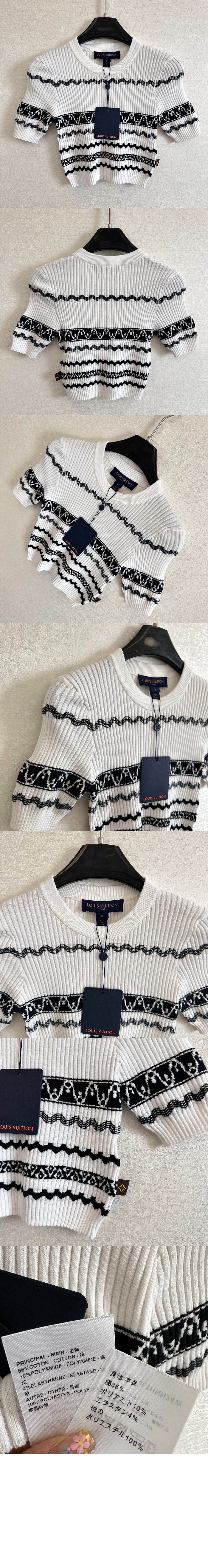루이비통 스캘럽 스트라이프 크롭드 니트 톱 1AFTW3