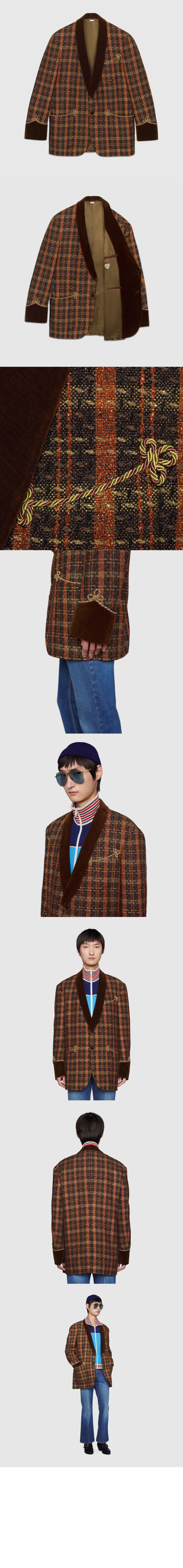 구찌 라메 스레드 체크 레이온 재킷 644386