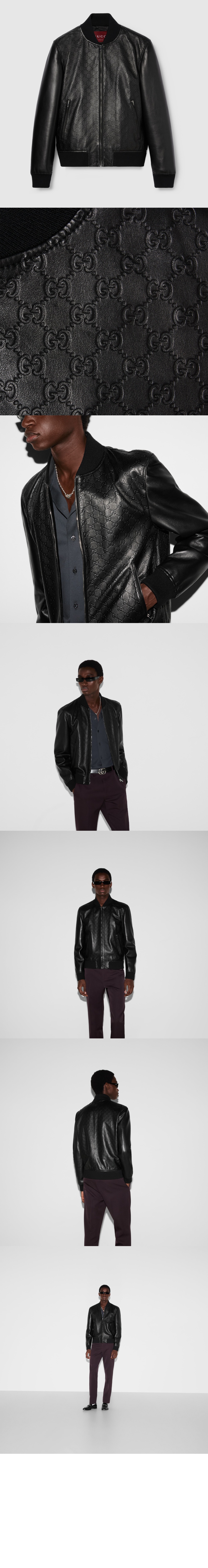 구찌 GG 엠보싱 가죽 보머 재킷 793171