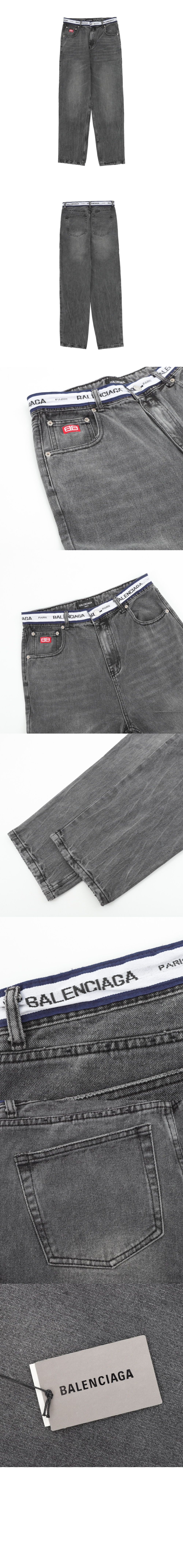 발렌시아가 웨이스트 로고 밴딩 데님 진