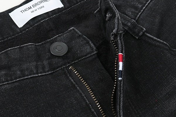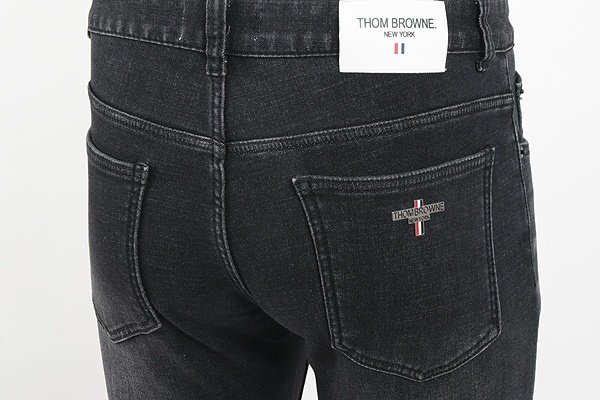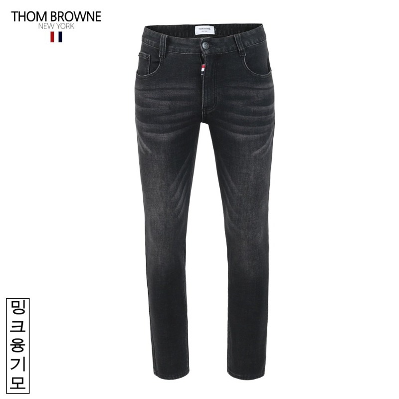 THOM BROWNE 톰브라운 스틸로고 화이트패치 밍크융 흑청 슬림진 > 의류