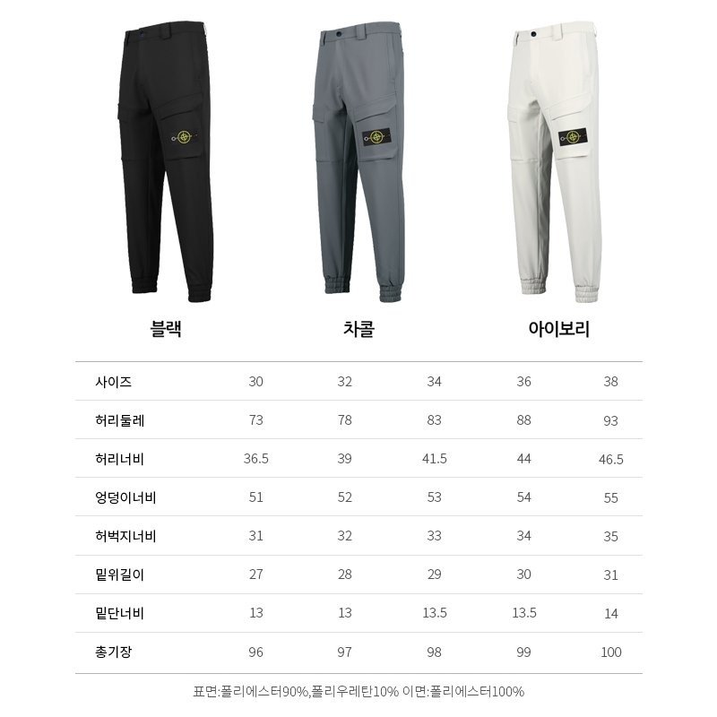 STONE ISLAND 스톤아일랜드 슬림핏 약기모 조거 카고 팬츠