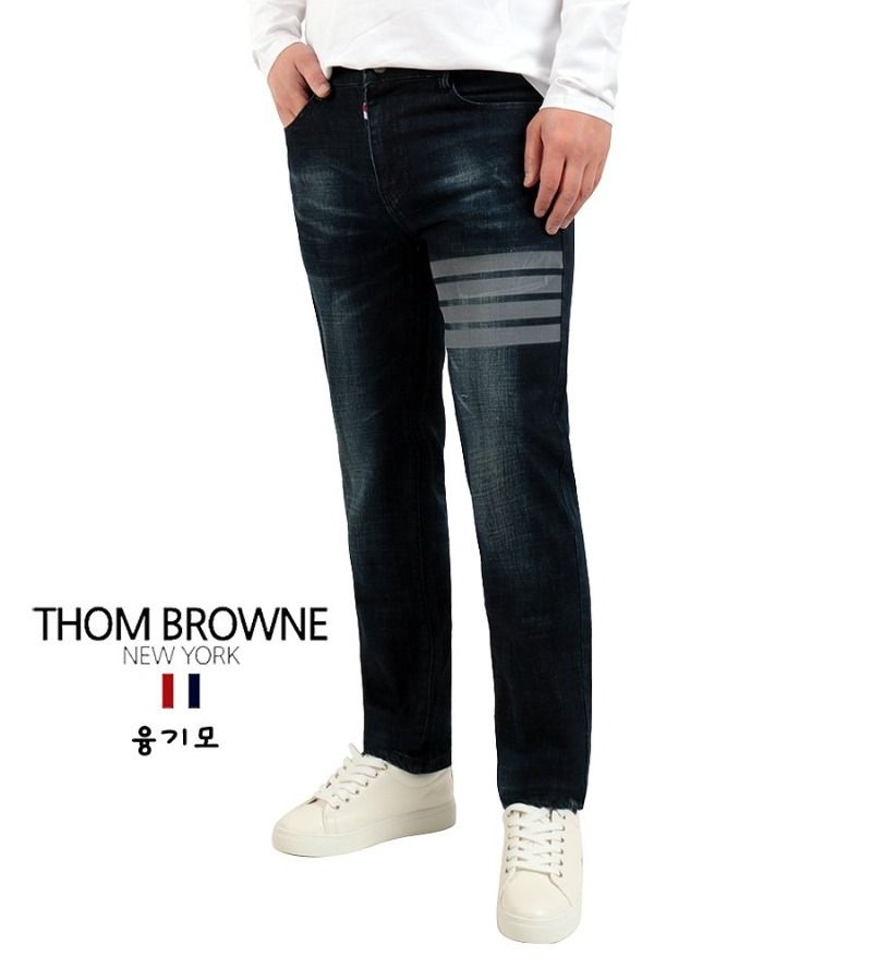 THOM BROWNE 톰브라운 4바 도그자수 융기모 블루블랙진 > 의류