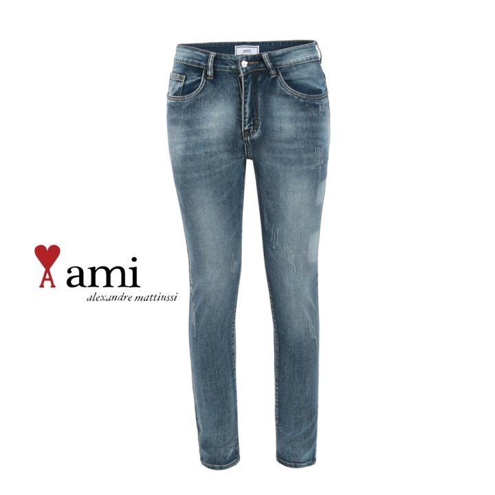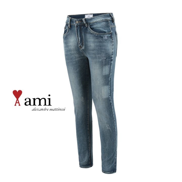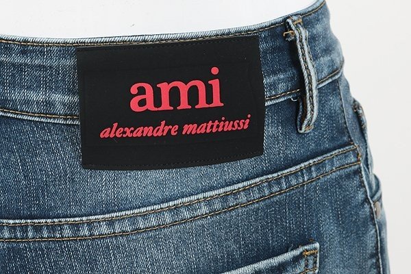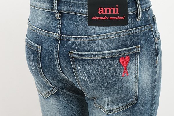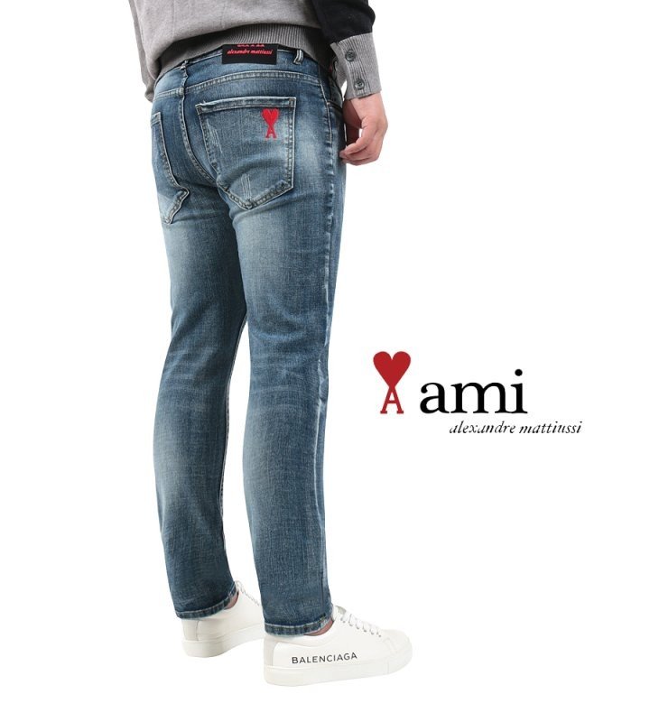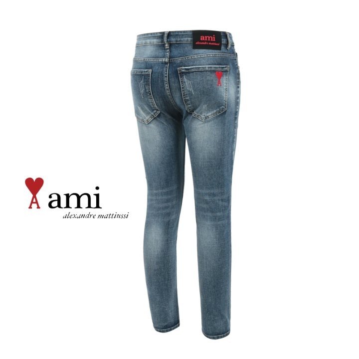 AMI 아미 레드 하트 자수 슬림진 > 의류