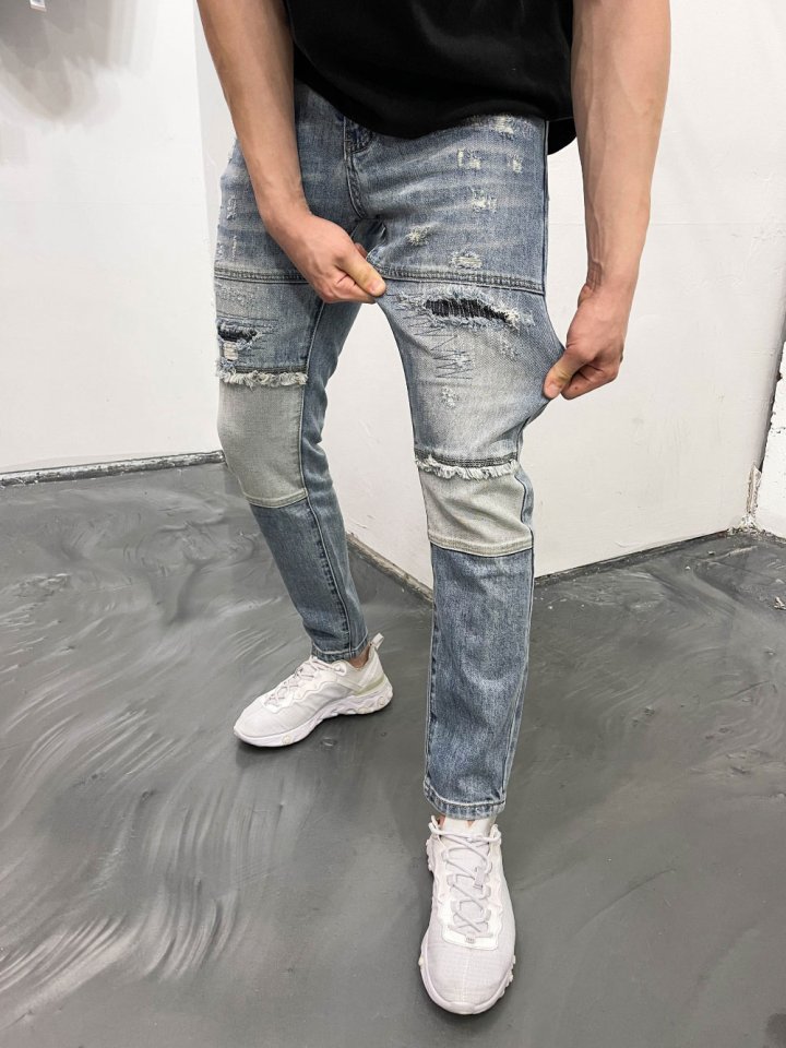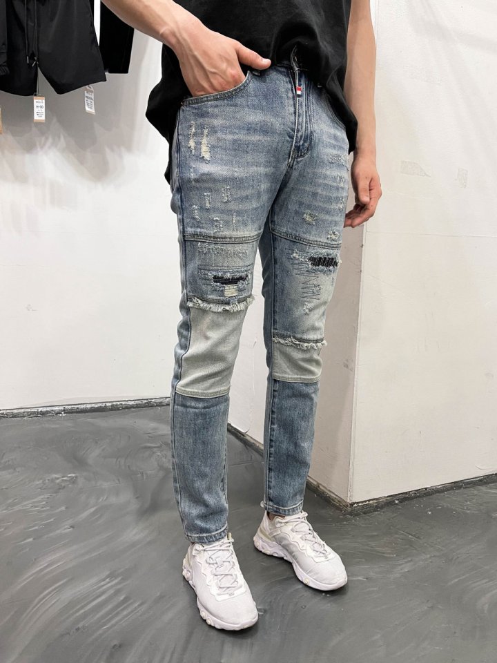 Thom Browne 톰브라운 덧뎀 구제 워싱 청바지 > 의류