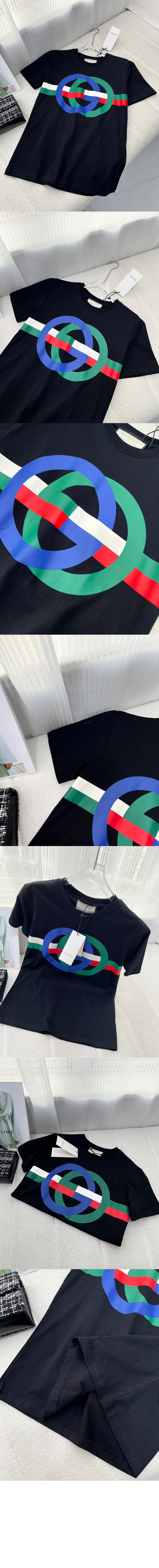 구찌 자수 로고 코튼 티셔츠 616036