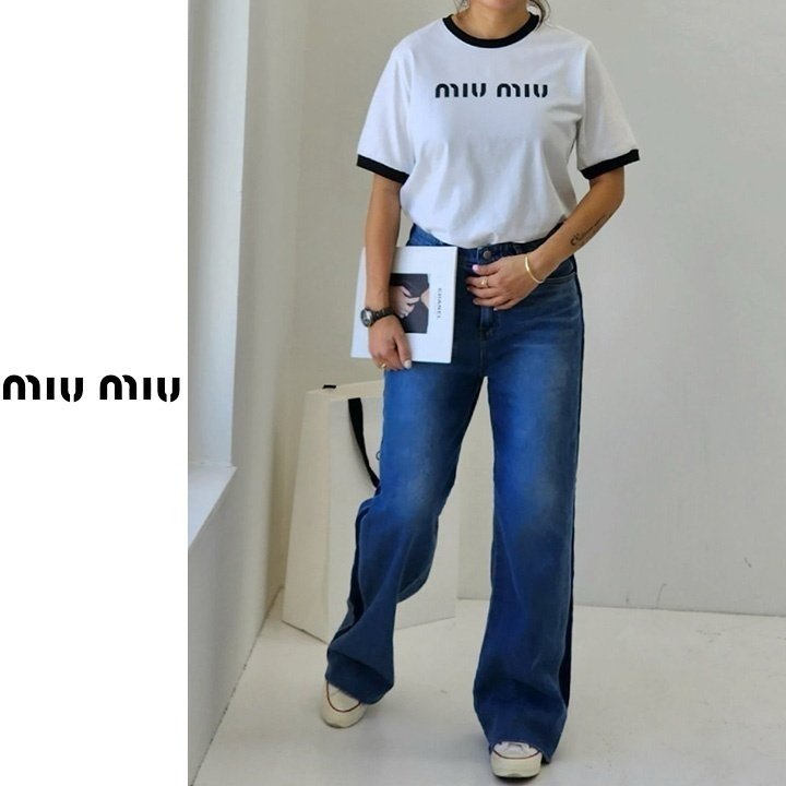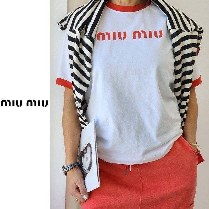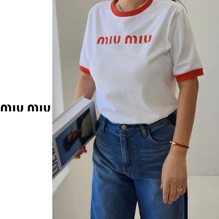 Miumiu 미우미우 배색 레터링 티셔츠