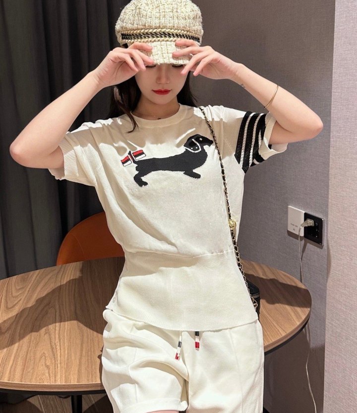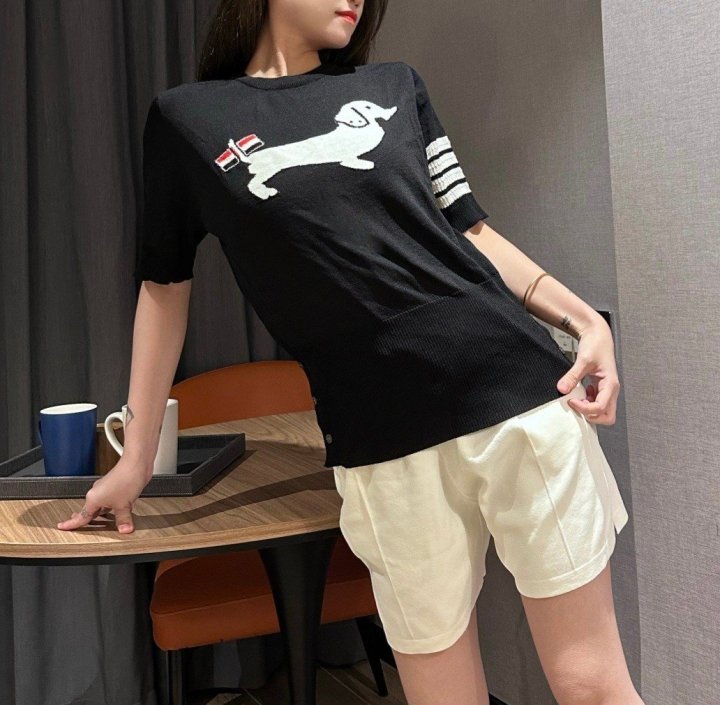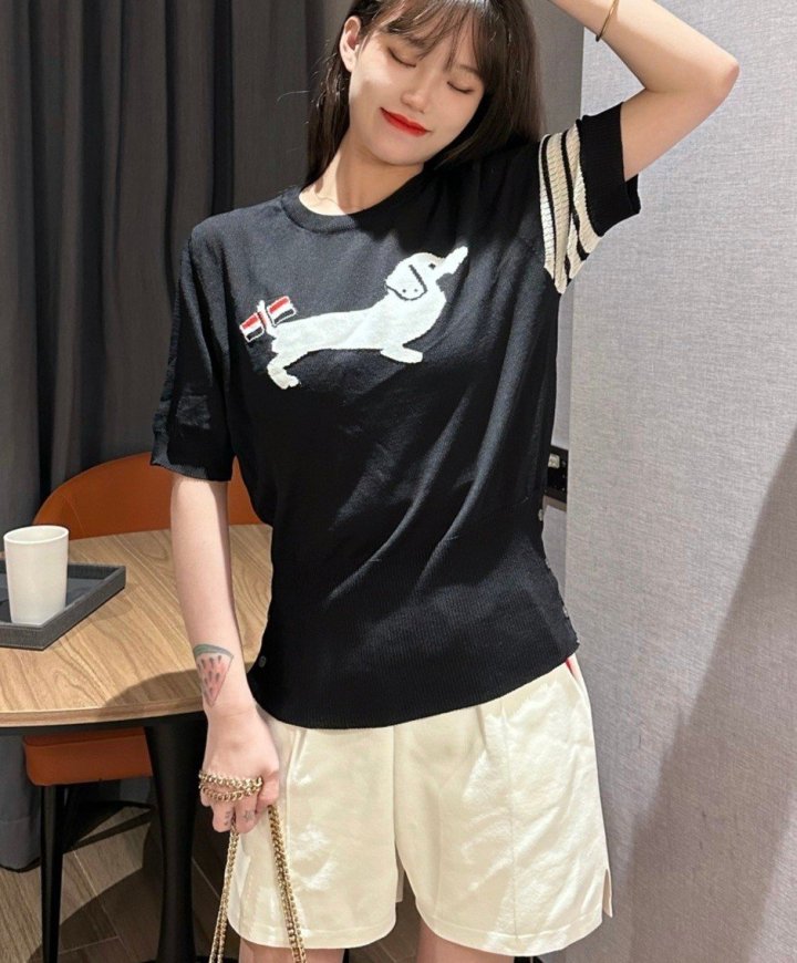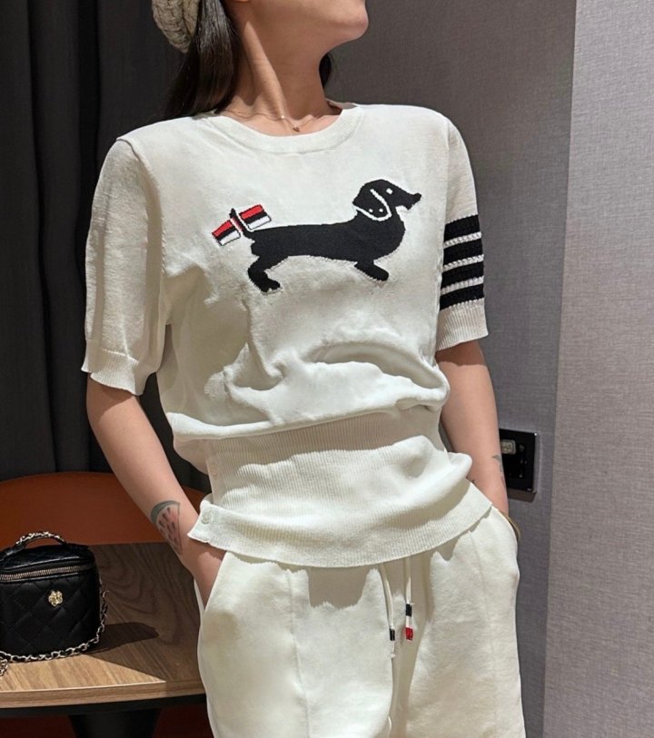 Thom Browne 톰브라운 테일 삼선 반팔 라운드 니트 > 의류