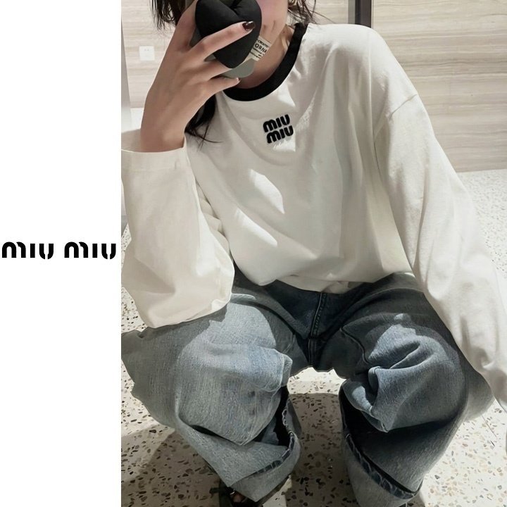 MIUMIU 미우미우 배색 패치 티셔츠 2COLOR > 의류