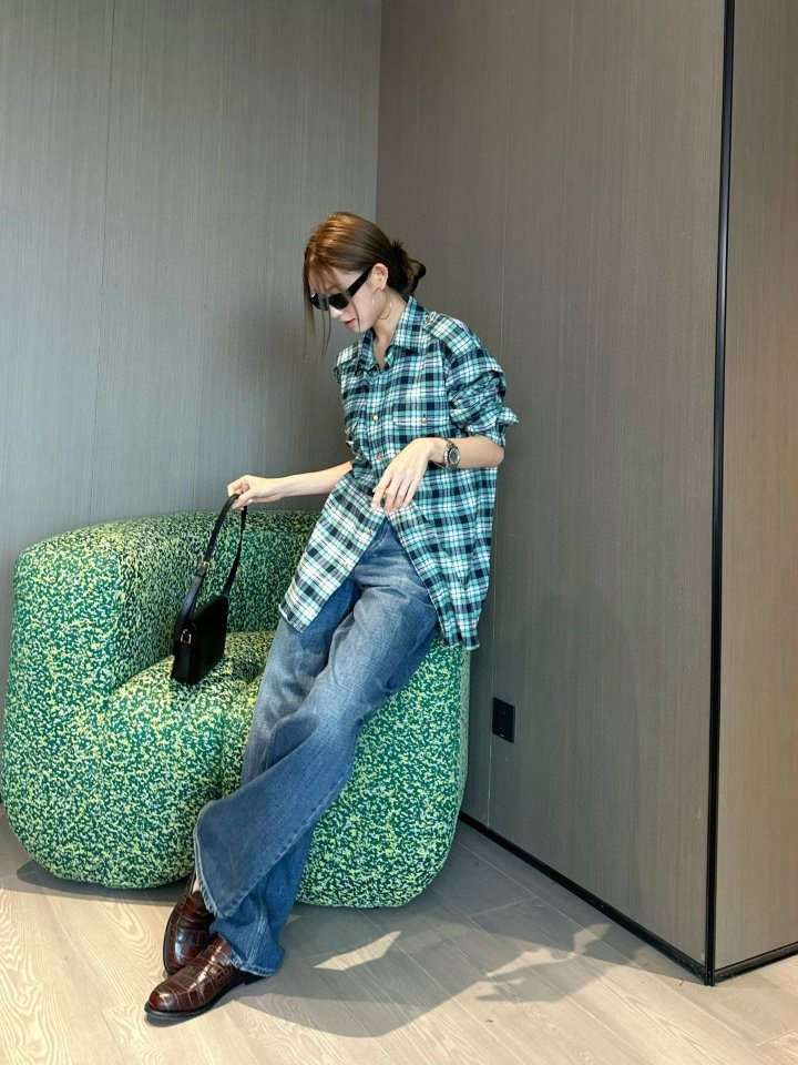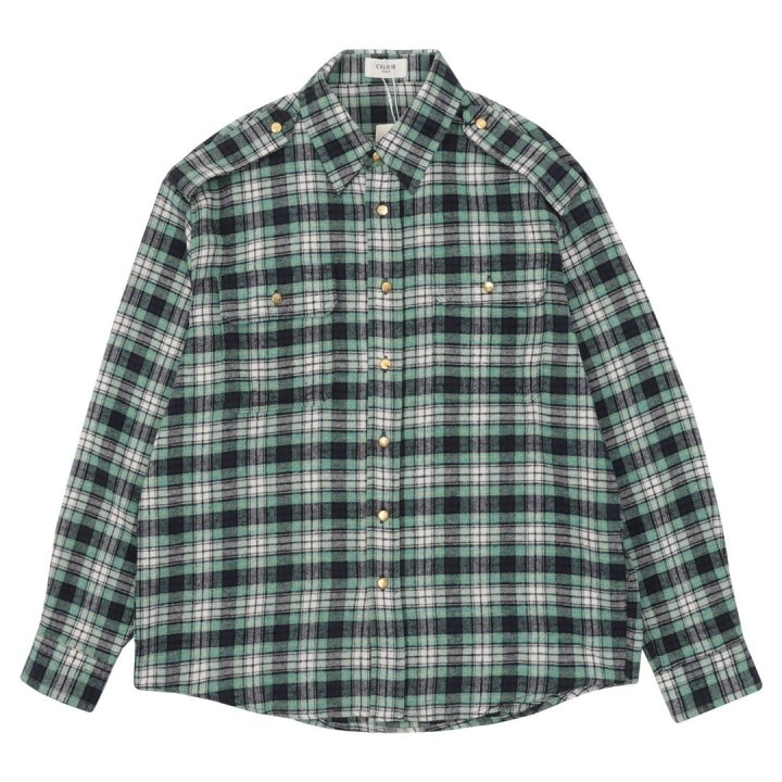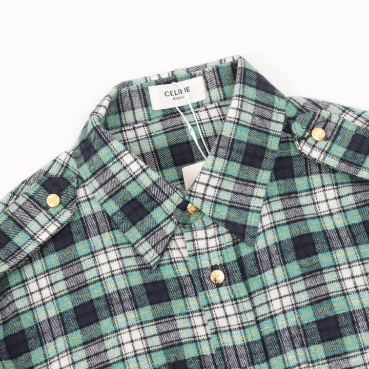 CELINE 셀린느 골드 버튼 플란넬 체크 셔츠 > 의류