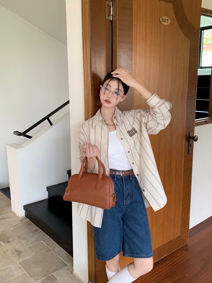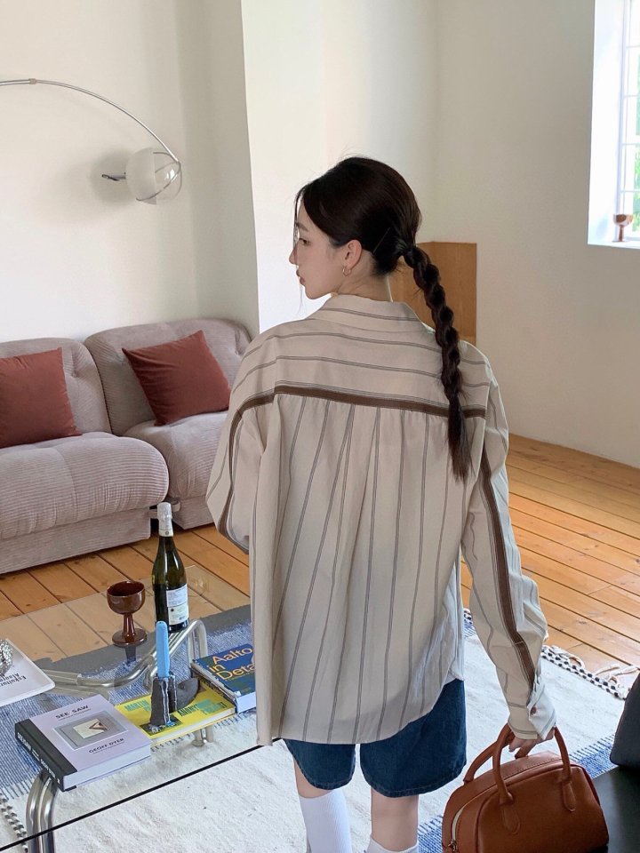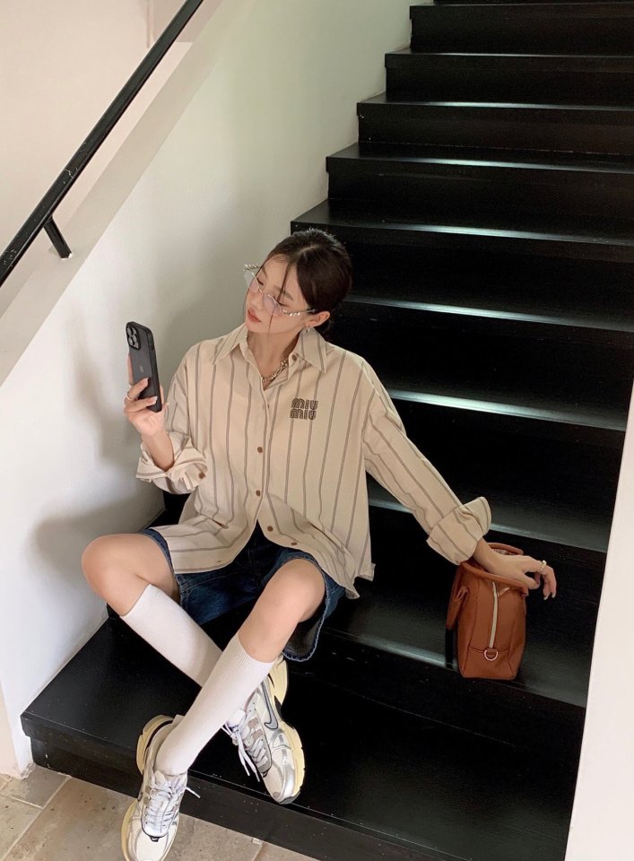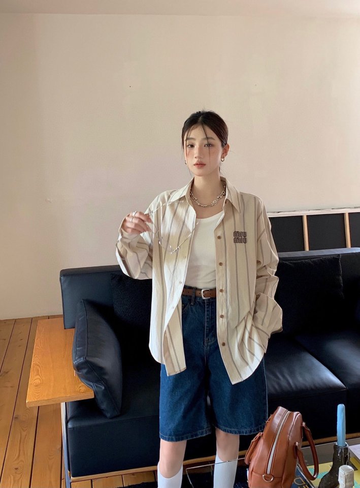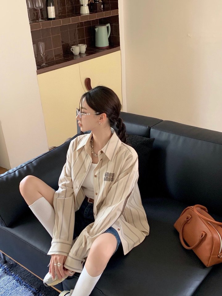 Miumiu 미우미우 스트라이프 브라운 셔츠 > 의류